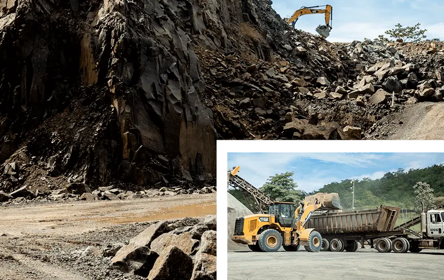 La materia prima principal para la producción de nuestros agregados es la piedra basáltica, la cual garantiza las características físico-químicas del material que se utiliza en concretos estándar y de alta resistencia.
