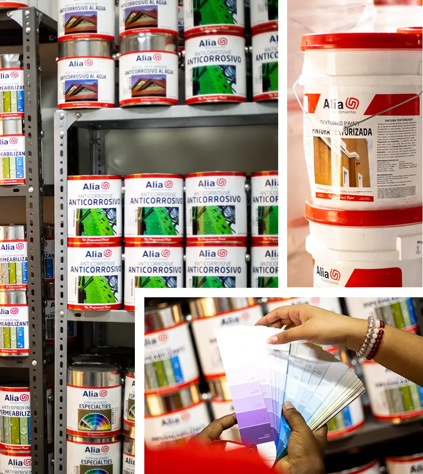 Ofrecemos pinturas acrílicas, textura, en aceite, anticorrosivos alquídicos y base agua, selladores e imprimantes, pastas acrílicas para interior y exterior, gypsum además de muchas más especialidades, lo que nos permite ofrecer a nuestros clientes una solución integral para los acabados de sus proyectos.